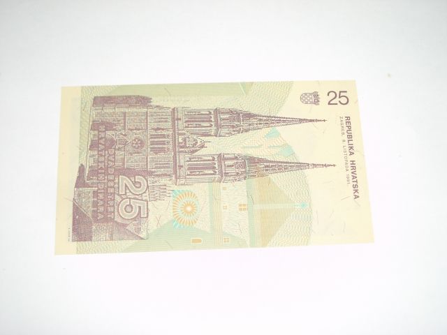1991 HRVATSKA 25 DINAR NOTE *RARE UNC HIGH GRADE NOTE*!! ***Coin, Currency & All Items Listed in this auction - Grades, Conditions and Values are not Safe Deposit Coins LLC Responsibilty. Grades, Condition and Values are determined by Consigner(s) & Buyers ONLY***