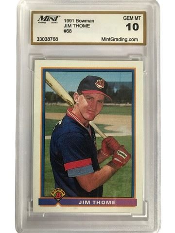 1991 Bowman Jim Thome Cleveland Indians # 68 trading card. Mint Grading Service graded.