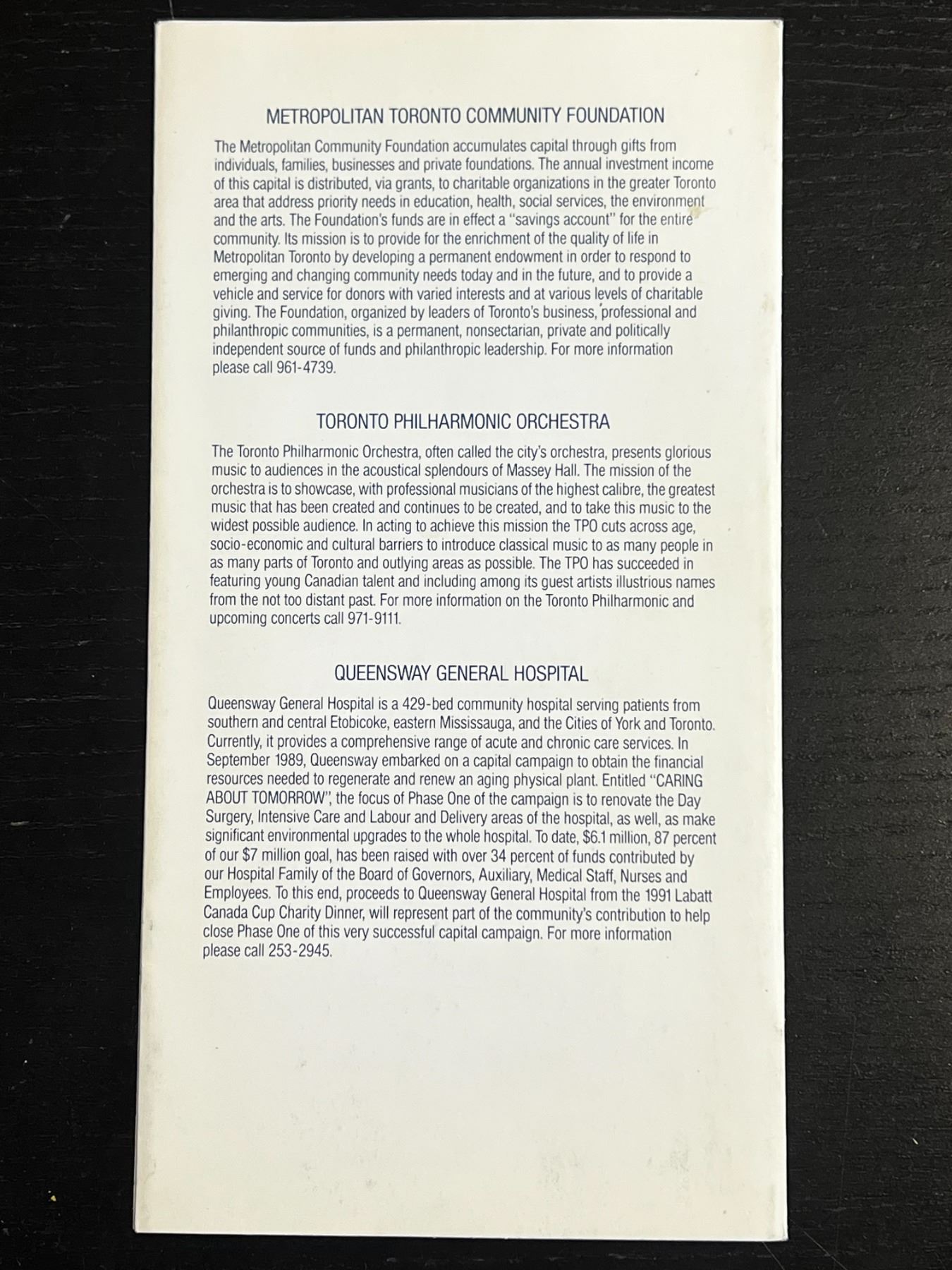 1991 Labatt Cup Dinner Program SIGNED by S.Fedorov