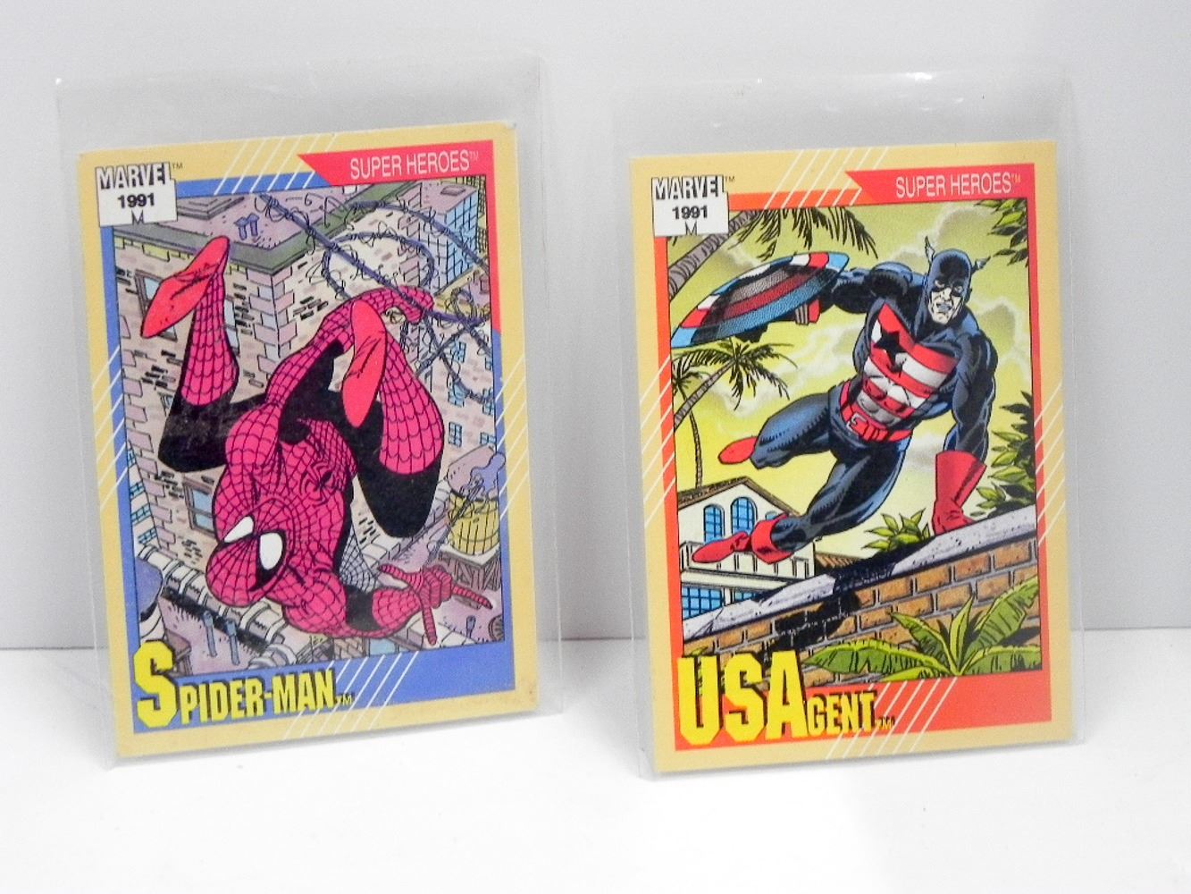 1991 MARVEL SUPER HEROES TRADING CARD SPIDER-MAN #1 AND USA AGENT #35
