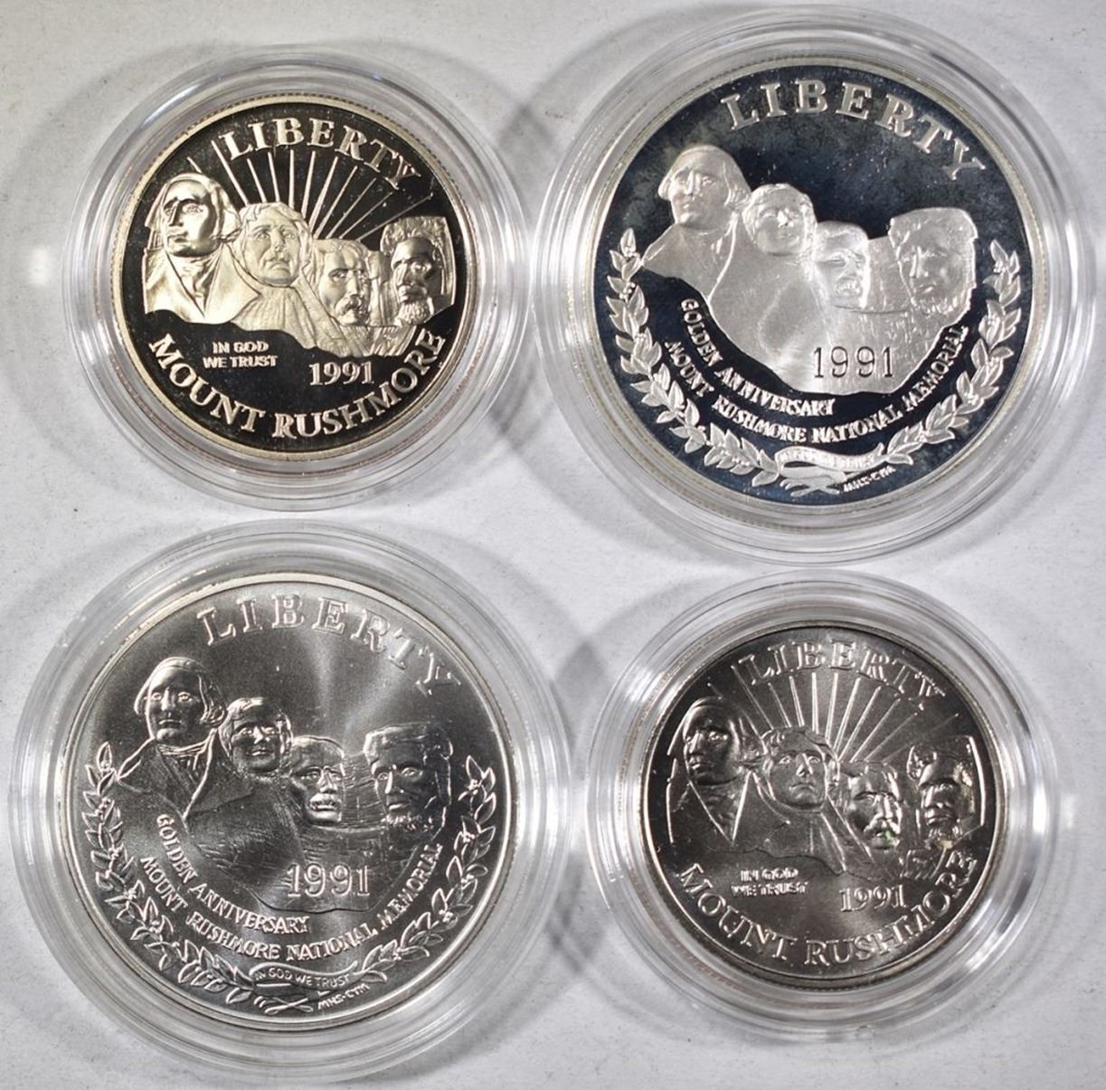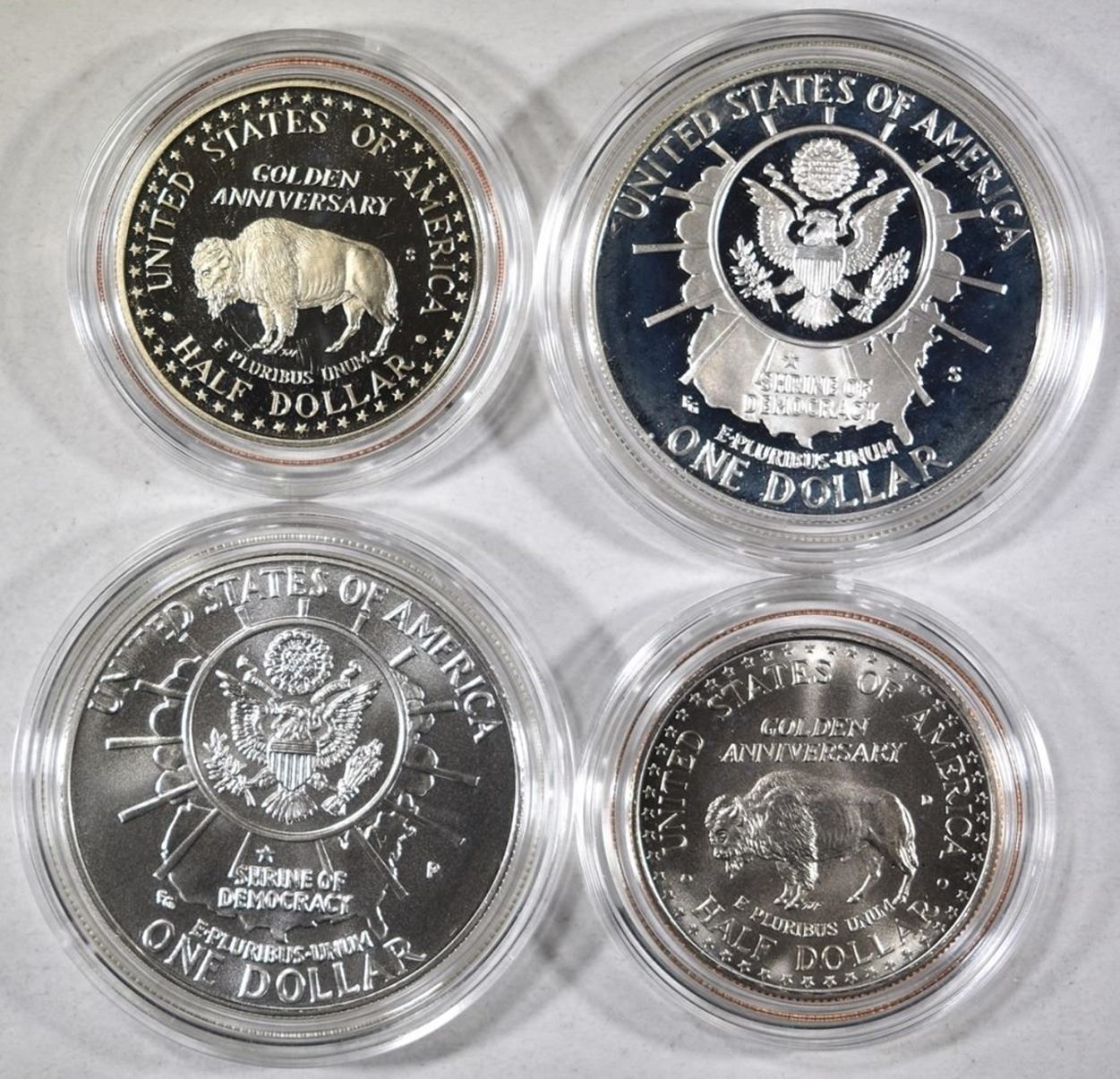 1-PROOF SILVER DOLLAR, 1-PROOF HALF-DOLLAR, 1- 2 COIN UNC SET WITH SILVER DOLLAR AND HALF-DOLLAR ESTIMATE $90 - $100.