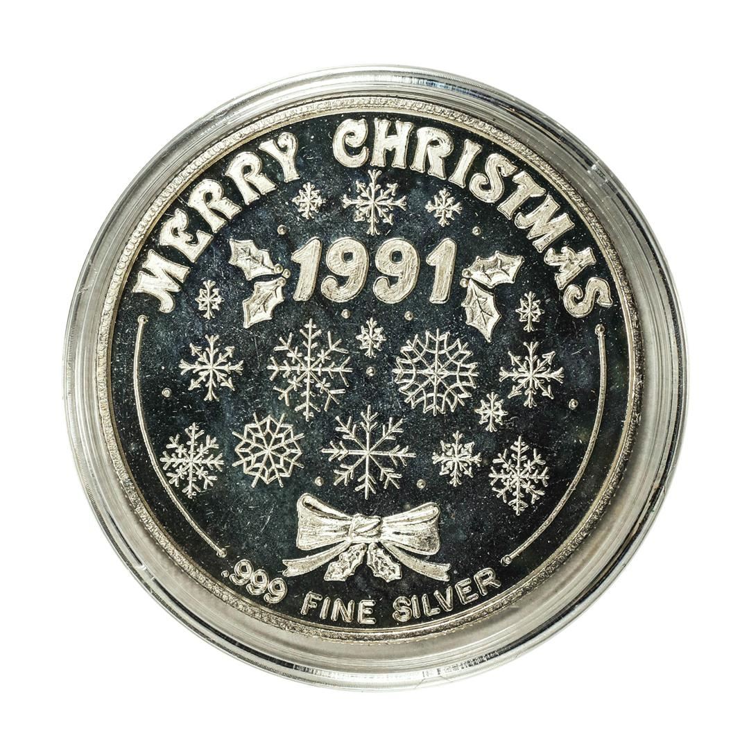 One 1991 Merry Christmas 1 Ounce .999 Fine Silver Round.