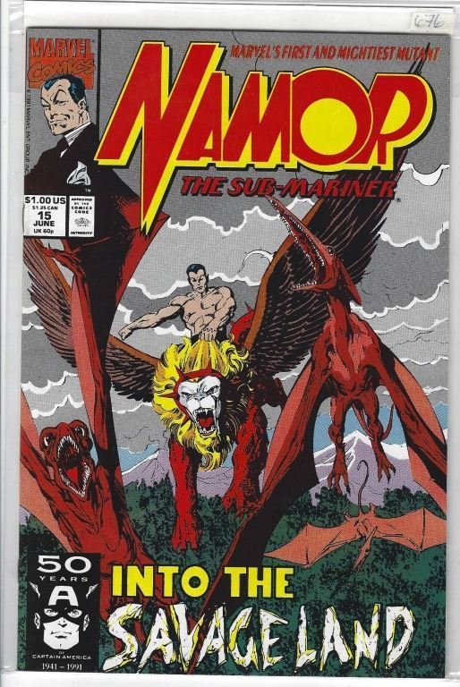 1991 "NAMOR THE SUB-MARINER" MARVEL COMIC #15 JUNE $1.00 (US) $1.25 (CAN) 60p (UK)