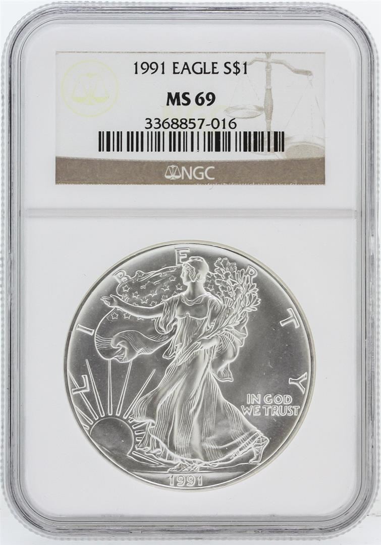 One 1991 NGC MS69 American Silver Eagle Dollar. NGC Certified.