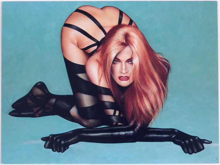 This is a 1991 greeting card with artwork by Olivia De Berardinis titled Sidewinder. We believe this is model/actress Tracy Tweed, sister of Shannon Tweed. **MORE nude/risque cards (from Olivia and other erotica artists) in this auction. From the estate of a big collector of pin-up and risque art. SIZE: Approx. 5" x 6 1/2". Olivia De Berardinis, or simply Olivia, is an American artist who is known for her paintings of women, often referred to as pinup or cheesecake art. She has been working in this genre since the mid-1970s. De Berardinis' artwork has been shown in art galleries throughout the United States and Japan, and her work is collected by fans worldwide. An original De Berardinis painting now appears in each issue of Playboy magazine.