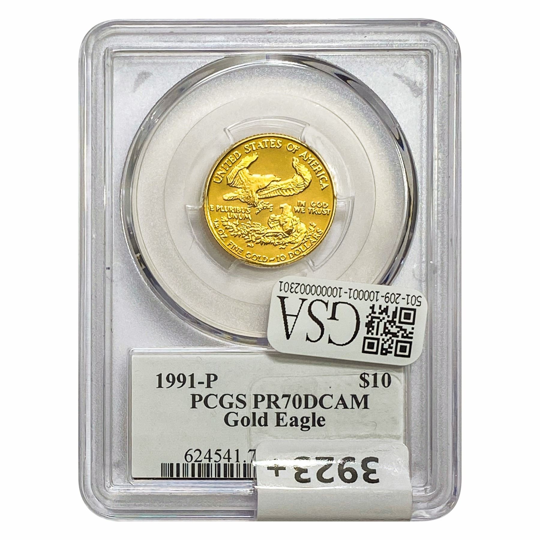 1991-P 1/4oz $10 AGE PCGS PR70 DCAM