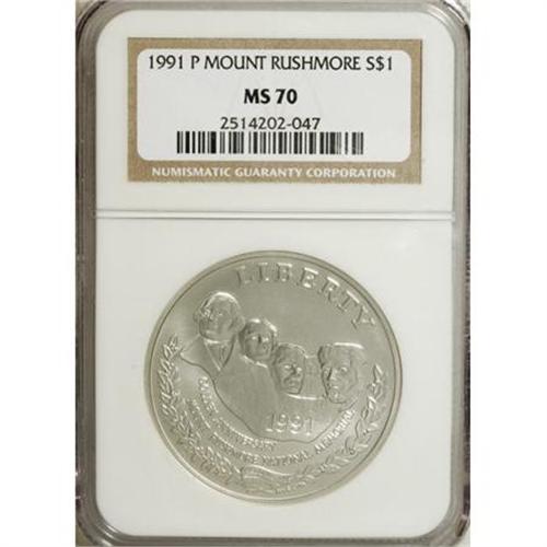 1991-P $1 Mount Rushmore Silver Dollar MS70 NGC. N