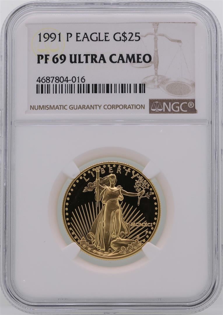 One 1991-P $25 American Gold Eagle Coin NGC PF69 Ultra Cameo. NGC Certified.