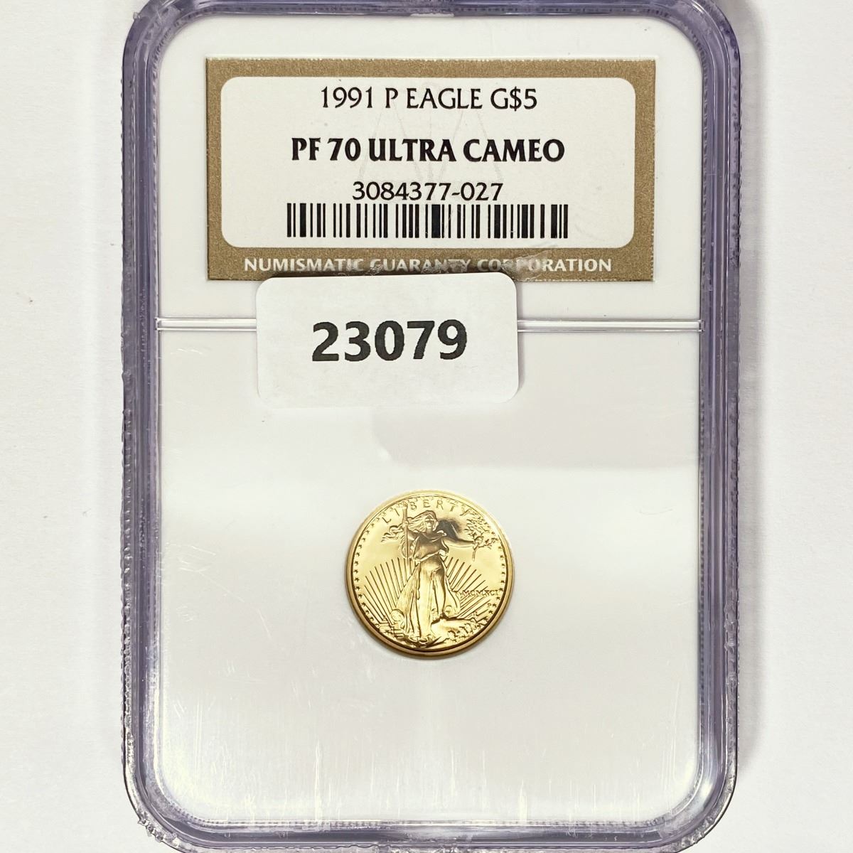 1991-P $5 1/10oz American Gold Eagle NGC PF70 UC