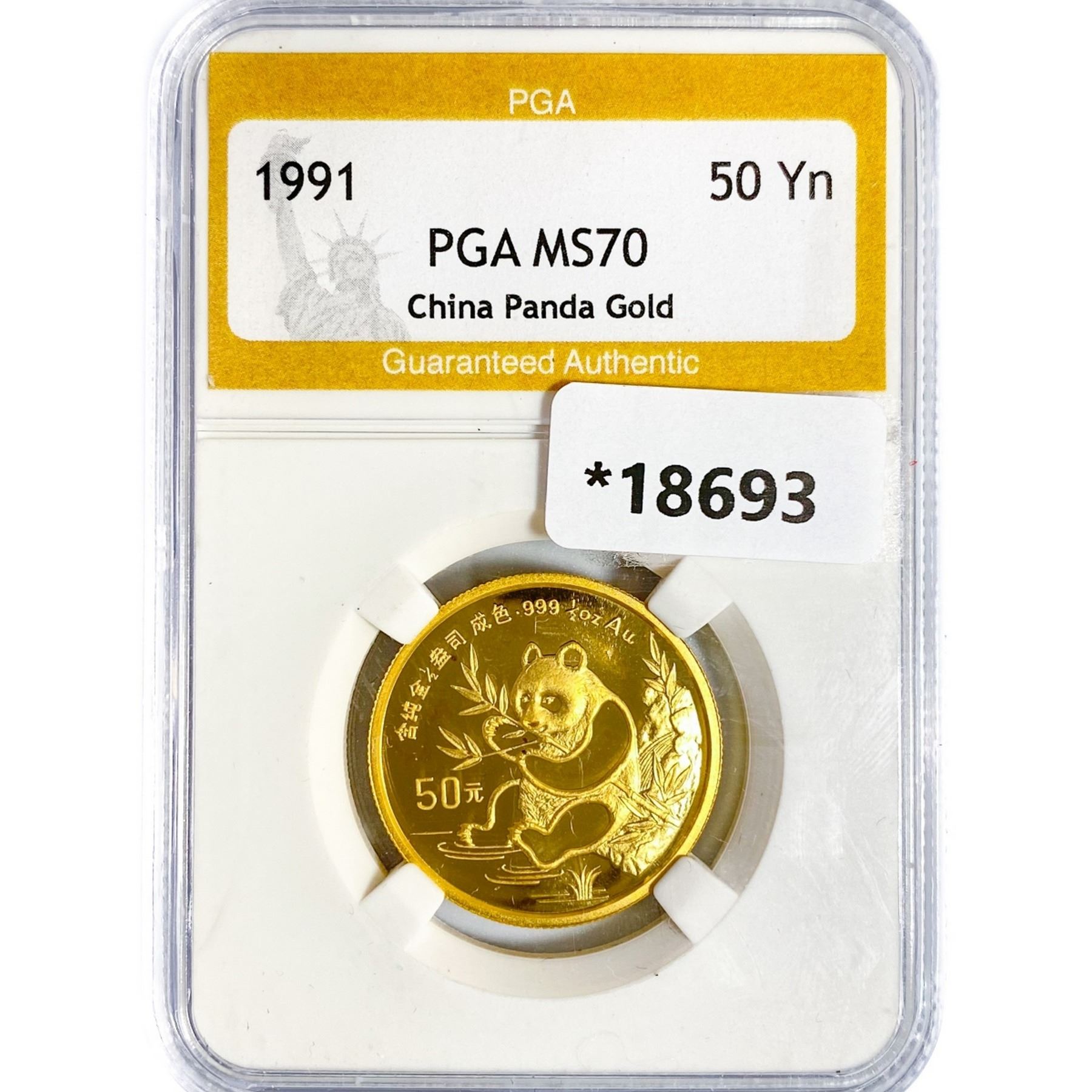 1991-P 50Yn 1/2oz China Gold Panda PGA MS70 DCAM