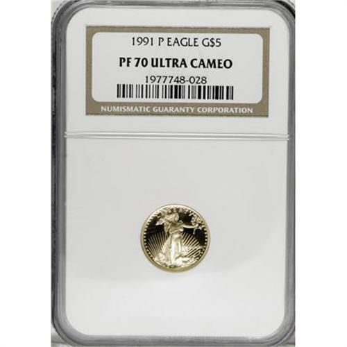 1991-P G$5 Tenth-Ounce Gold Eagle Deep Cameo PR70 NGC