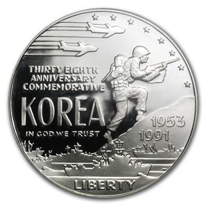 1991-P Korean War $1 Silver Commemorative - PR-69 DCAM **|**|** Year: 1991 ; Mint Mark: PR-69 DCAM ; Grade: P - Philadelphia ; Denomination: 1 ; MSRP: $100