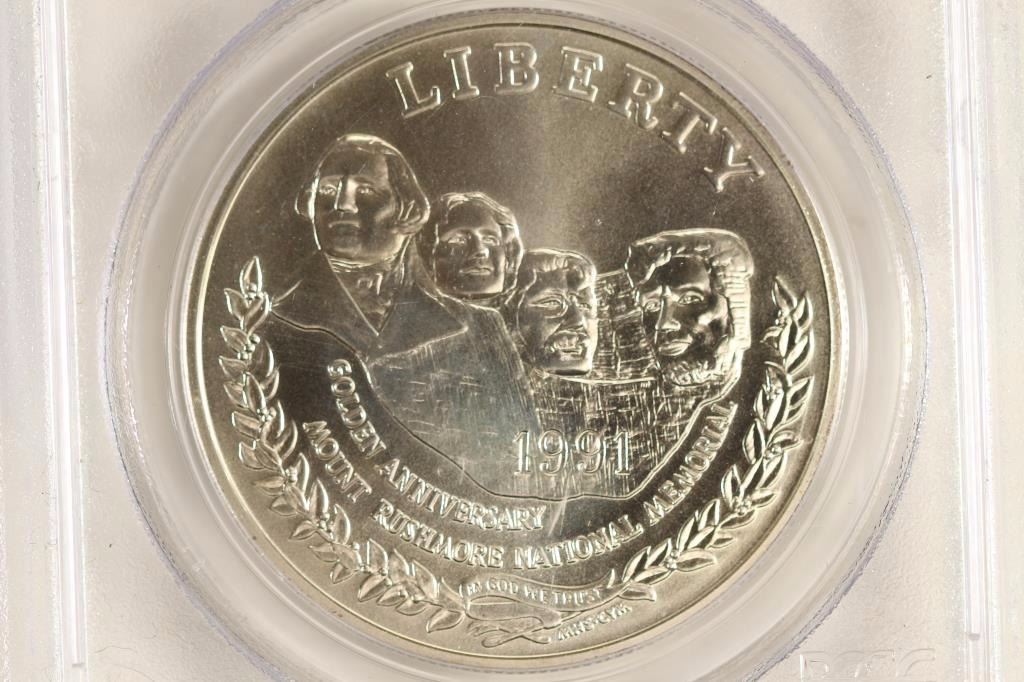 1991-P MT . RUSHMORE SILVER DOLLAR PCGS MS69
