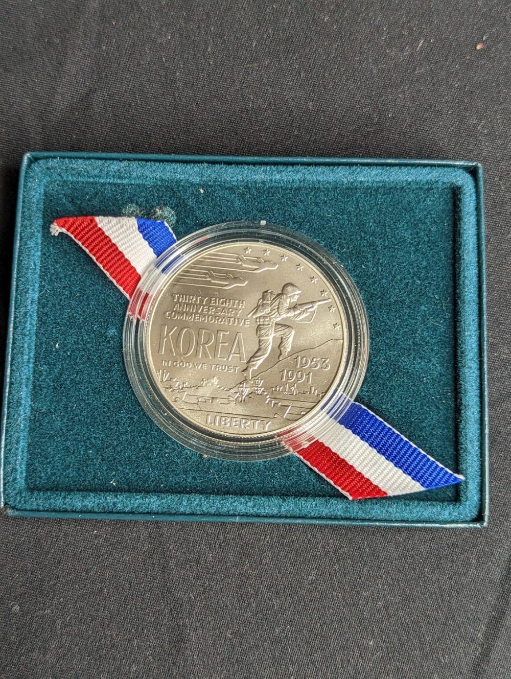 A 1991 Proof Korean War Commemorative Silver Dollar. Nice Bright White silver dollar.