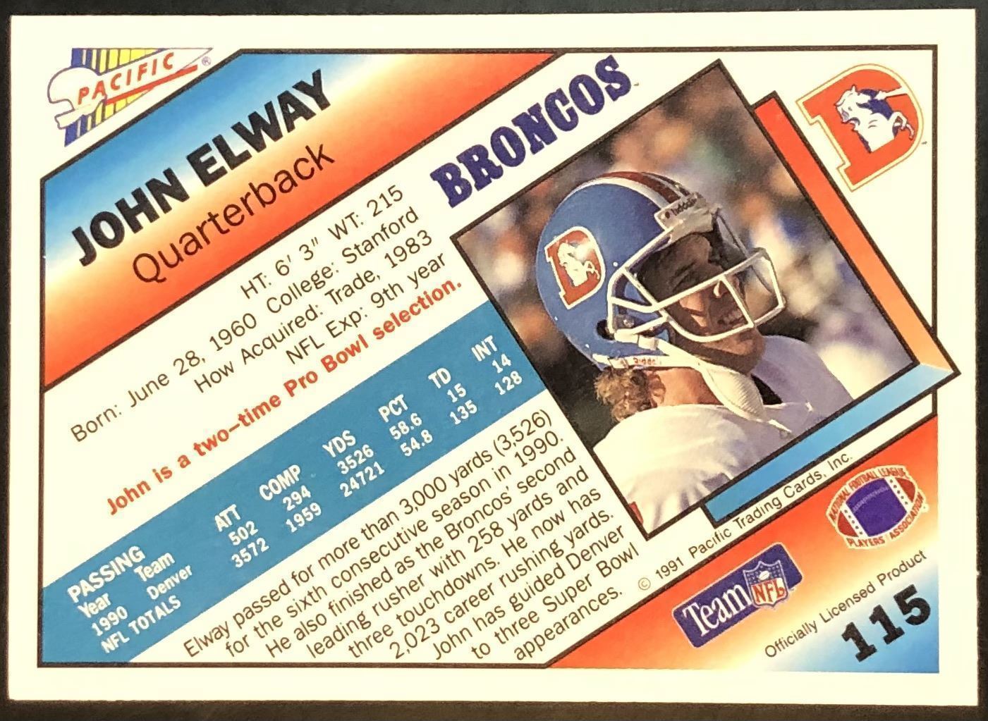 Card #115 NFL, football, hall of fame