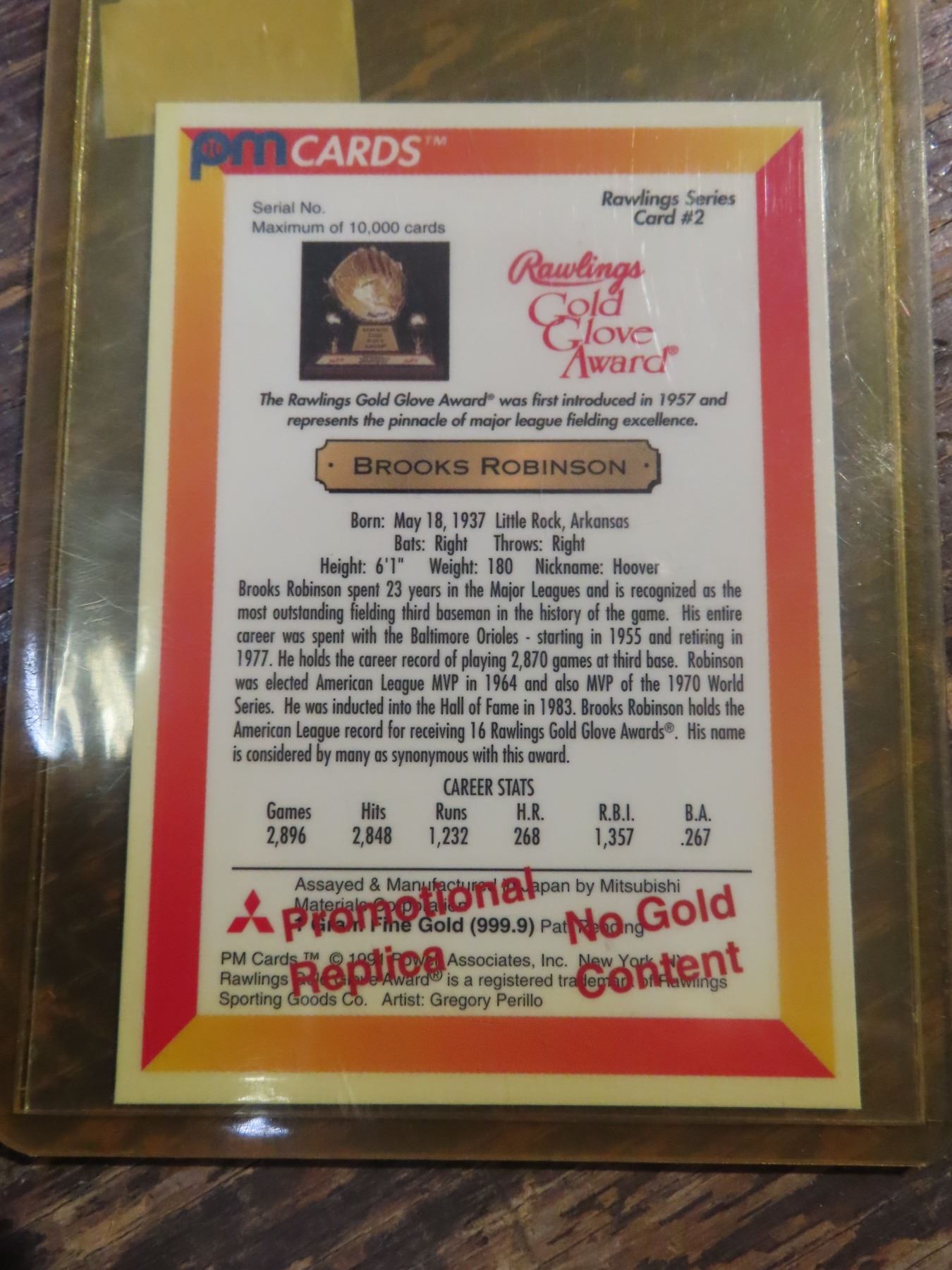 1991 PM Cards Rawlings Series Promo #2 Brooks Robinson card