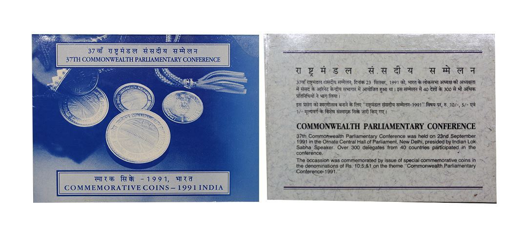 1991 Proof Set, 37th Commonwealth Parliamentary Conference, set of 3, Rupee 1, 5 and 10. In immaculate condition, within original packaging. (3); ( from the collection of Mr. I. K. Kejriwal ).