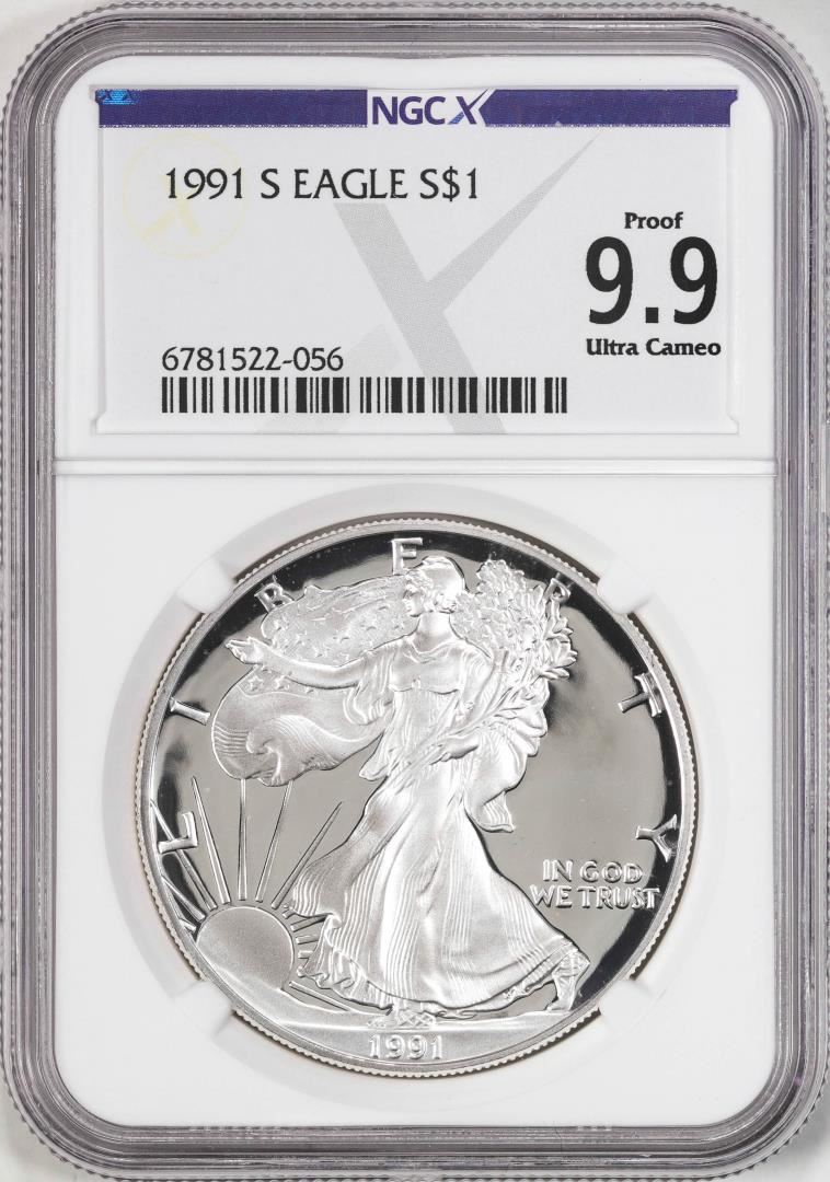 One 1991-S $1 Proof American Silver Eagle Coin NGCX Proof 9.9 Ultra Cameo. NGC Certified.