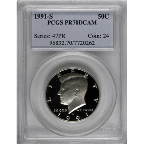 <B>1991-S 50C PR70 Deep Cameo PCGS.</B></I> PCGS Population (121/0). NGC Census: (157/0). Numismedia Wsl. Price for NGC/PCGS coin in PR70: $220. (#96832)<BR><BR><b>Shipping:</b> Coins & Currency (<a target="_blank" href="http://www.heritageauctions.com/common/shipping.php">view shipping information</a>)