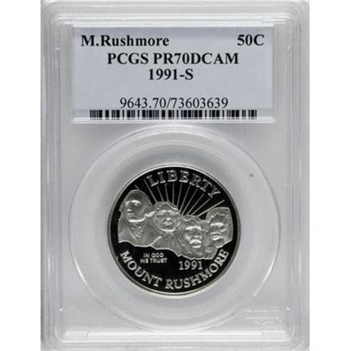 <B>1991-S 50C Mount Rushmore Half Dollar PR70 Deep Cameo PCGS.</B></I> PCGS Population (13/0). NGC Census: (0/0). Mintage: 753,257. Numismedia Wsl. Price for NGC/PCGS coin in PR70: $600. (#9643)<BR><BR><b>Shipping:</b> Coins & Currency (<a target="_blank" href="http://www.heritageauctions.com/common/shipping.php">view shipping information</a>)