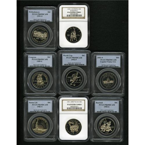 <B>1986-S 50C Statue of Liberty PR69 Deep Cameo PCGS; 1989-S Congress PR69 Deep Cameo PCGS; 1991-S Mount Rushmore Half Dollar PR69 Deep Cameo PCGS; (1991-1995)-P W.W. II PR69 Deep Cameo NGC; 1994-P World Cup PR69 Deep Cameo PCGS; 1995-S Olympic Basketball PR69 Deep Cameo NGC; 1995-S Baseball PR69 Deep Cameo PCGS;</B></I> and a <B>2001-P Capitol Visitor Center PR69 Deep Cameo PCGS.</B></I><BR><BR><b>Shipping:</b> Coins & Currency (<a target="_blank" href="http://www.heritageauctions.com/common/shipping.php">view shipping information</a>)