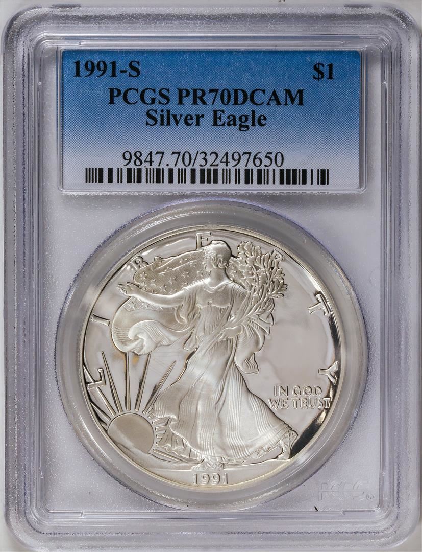 1991-S American Silver Eagle .999 Fine Silver Dollar Coin PCGS PR70DCAM
