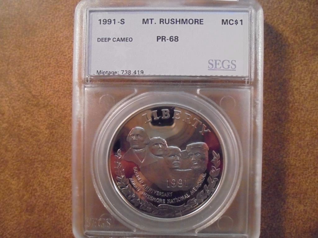 1991-S MT. RUSHMORE SILVER DOLLAR SEGS SLAB