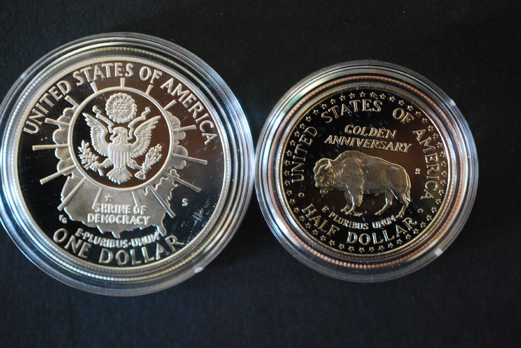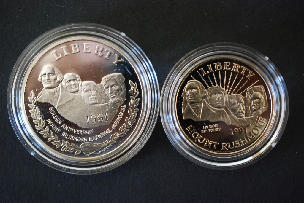 1991-S Mt. Rushmore Commerative $1 Proof; 90% Silver .76 Oz. & 1991-S Mt. Rushmore Commerative Half Dollar Proof; EST. $25
