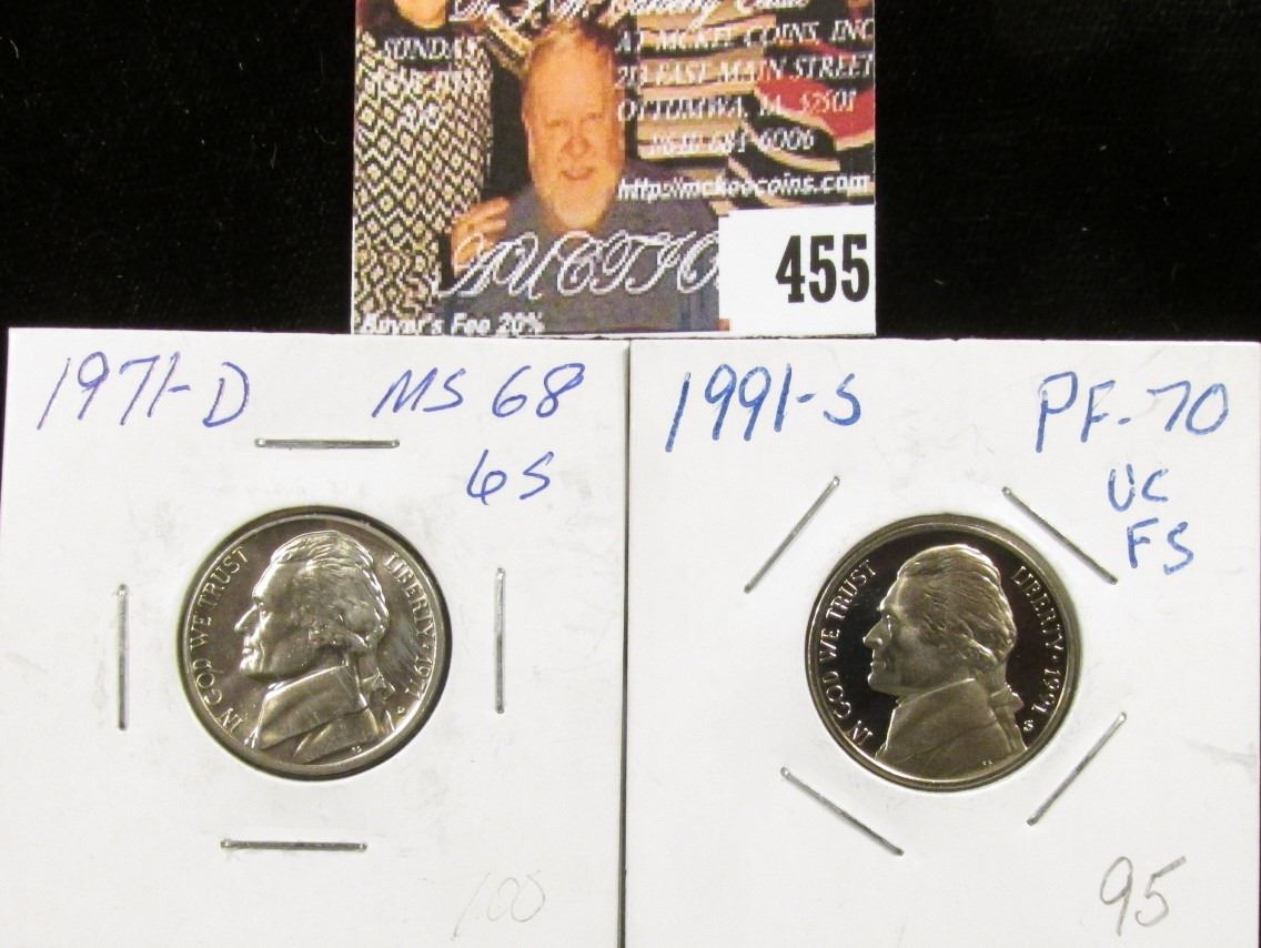 1991 S PR70 Cameo and 1971 D MS68 Jeferson Nickels.