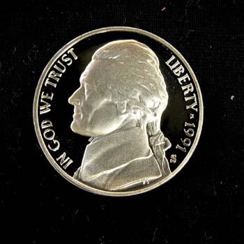 1991-S PROOF JEFFERSON NICKEL - MIRROR FINISH