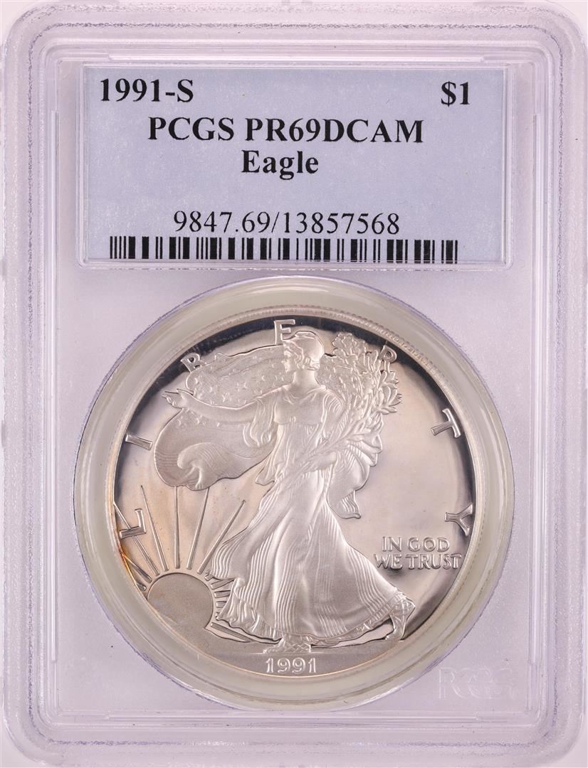One 1991-S Proof $1 American Silver Eagle Coin PCGS PR69DCAM. PCGS Graded.