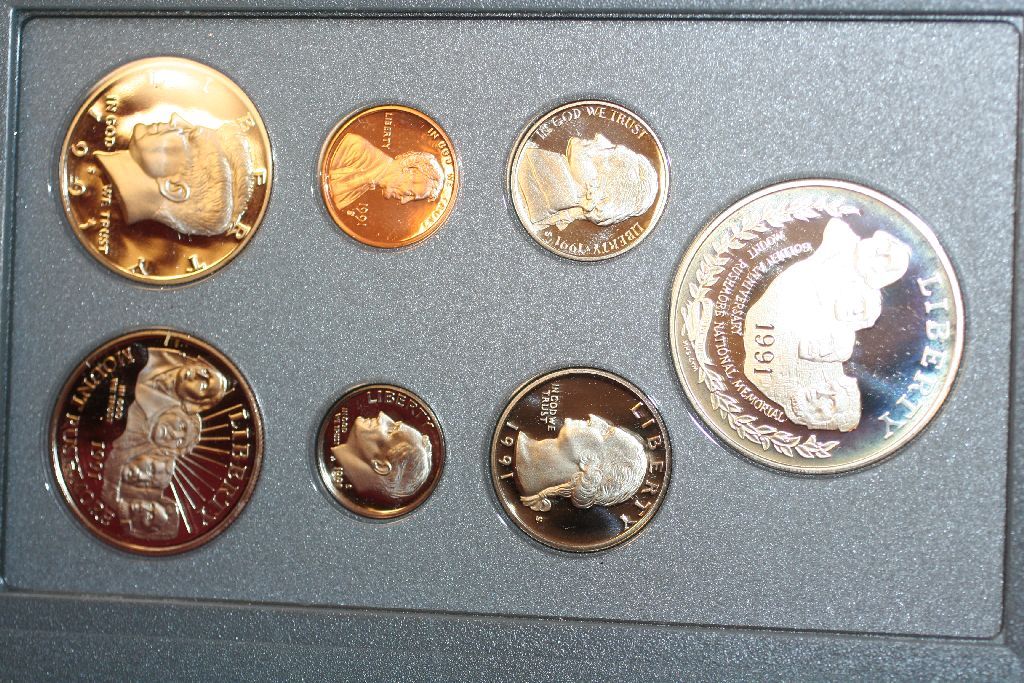 1991-S US Mint Prestige Proof Set W/Commerative Mt. Rushmore Half Dollar & Commerative $1 Coin