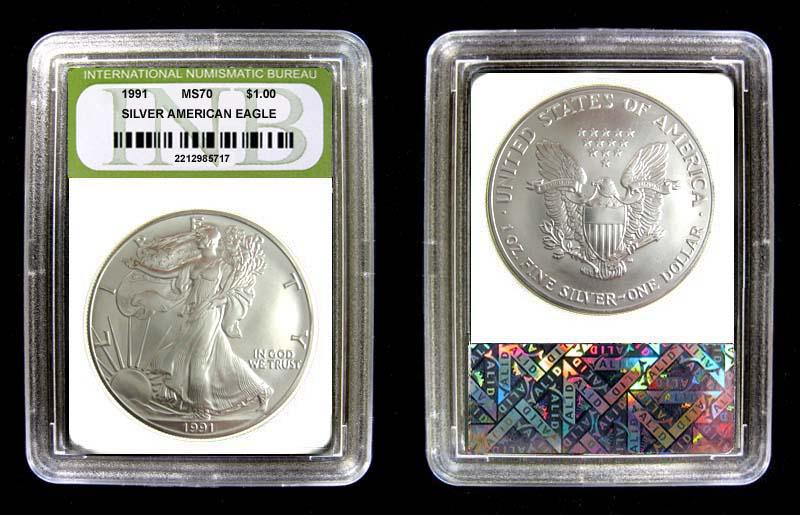 1991 SLABBED SILVER AMERICAN EAGLE HIGHEST GRADE INB GRADED MS70 - You may not receive the exact coin shown, but you will receive one of the same or better quality.