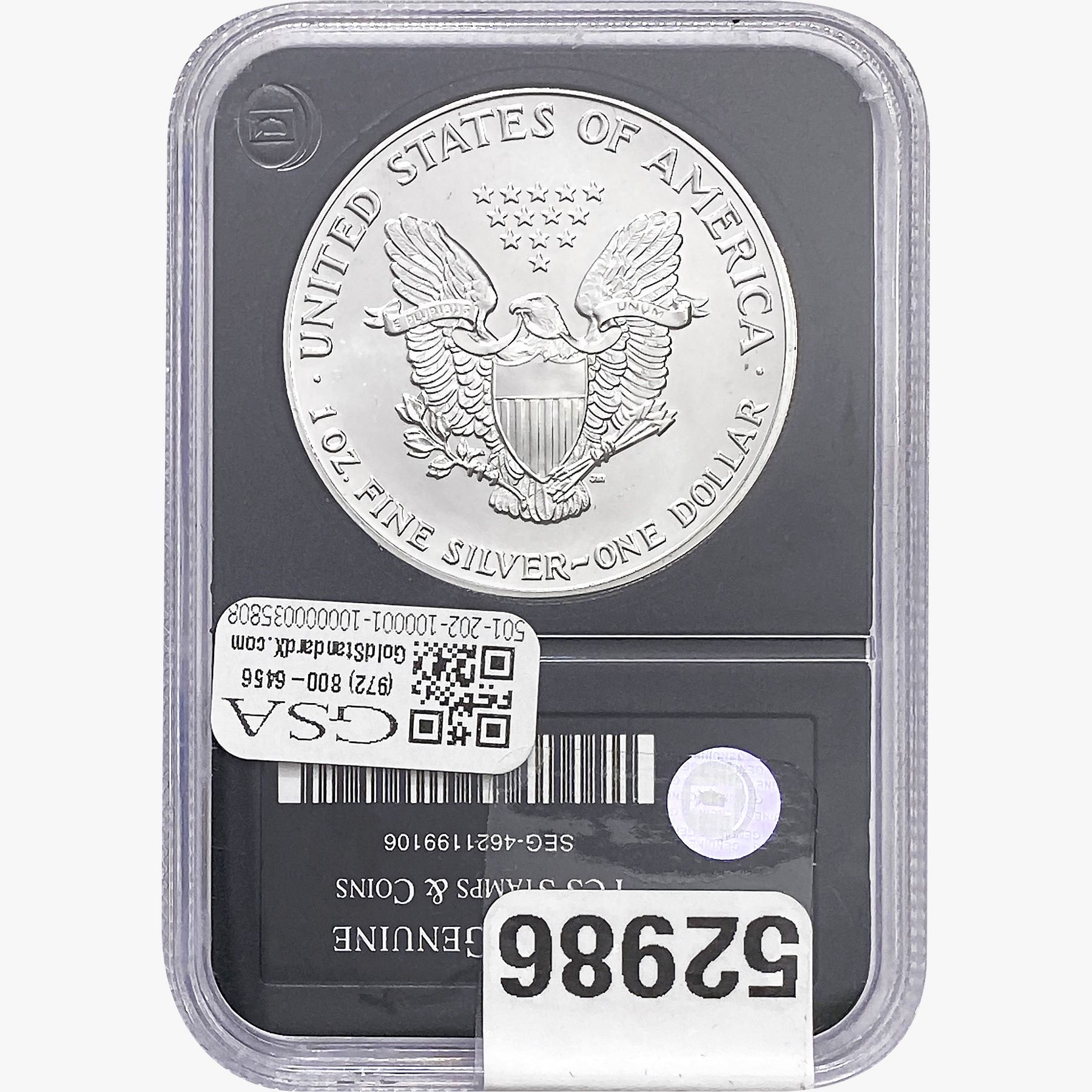 e. Coins sold referencing a third-party grading service are sold “AS IS” without any express or implied warranty, except for a guarantee by GSA that they are genuine. Removal or alteration of the holder, voids all of Bidder’s claims concerning that Product. Certain warranties may be available from the grading services and Bidders are referred to them for further details: Numismatic Guaranty Corporation (NGC), PO Box 4776, Sarasota, FL 34230, www.ngccoin.com/services/writtenguarantee.asp; Professional Coin Grading Services (PCGS), PO Box 9458, Newport Beach, CA 92658, www.pcgs.com/guarantee.html; ANACS, 6555 S. Kenton St., Ste. 303, Englewood, CO 80111; and Independent Coin Grading Co. (ICG), 7901 East Bellview, Ave., Suite 50, Englewood, CO 80111.