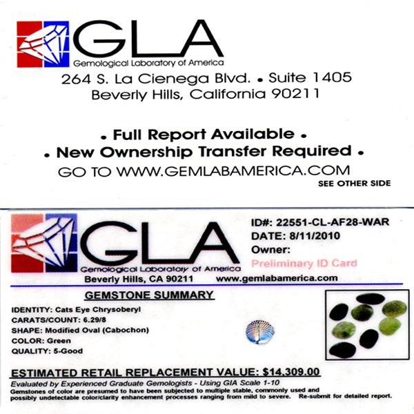 In the event that an item is listed as having an "Appraisal Estimate", this represents WAR's in-house estimate of what the item would appraise for at Gem Labs of America (GLA), Beverly Hills, CA. Actual appraisal of the item at GLA is the responsibility of the Bidder, however WAR may assist, at its discretion, in related logistics. WAR does provide the following guaranty (the "WAR 5% Loose Gem Guaranty") relative to Appraisal Estimate values of LOOSE GEMS: In the event that the GLA appraised value is not such an amount that the Bidder's winning bid is five percent (5%) or less of the GLA appraised value, then WAR, in it's discretion, will either refund such amount of the Bidder's winning bid and related charges so that the winning bid equals five percent (5%) of the GLA appraised value, or, instead issue a full refund on the item and reimburse the Bidder for the GLA appraisal fees. The Bidder may also opt to retain the item, in which case the WAR 5% Gem Guaranty shall not apply relative to the particular item.