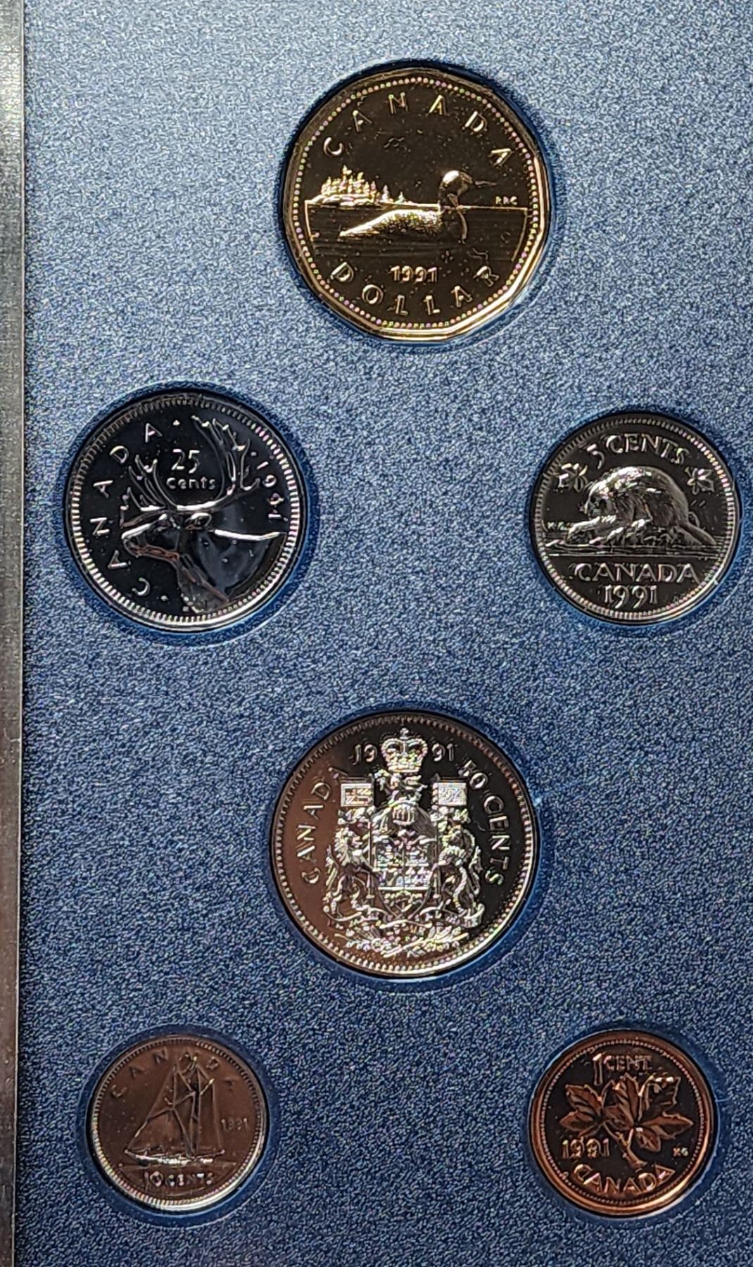 1991 Specimen Set. 6-coin set includes Scarce 1991 Caribou 25 Cents. Housed in its original RCM case of issue.