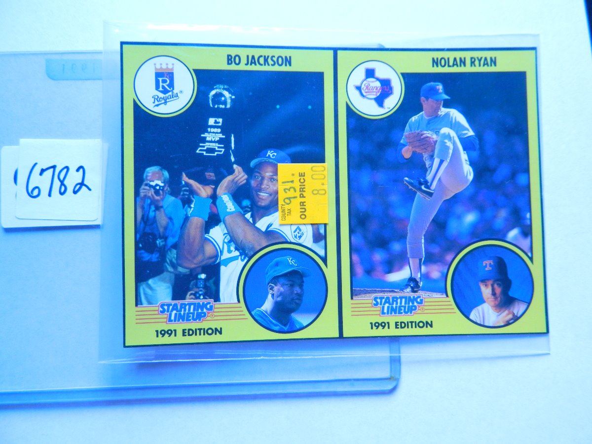 1991 Starting Lineup Panel, UNCUT, Bo Jackson & Nolan Ryan, stats on back