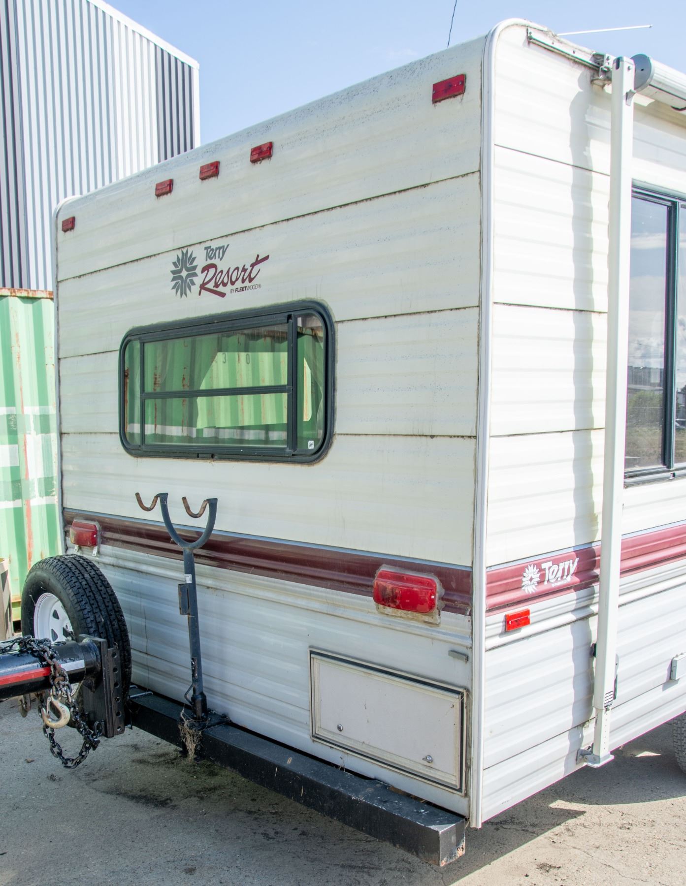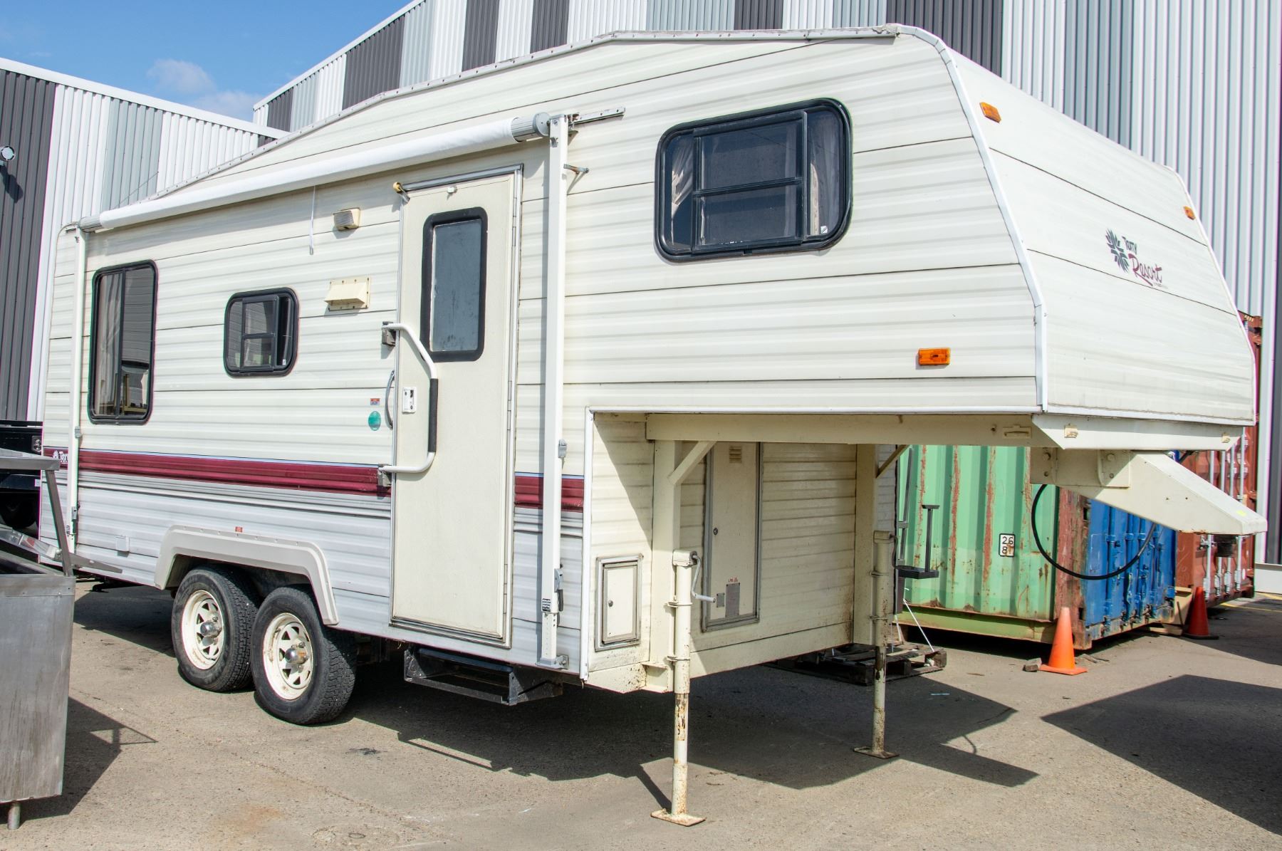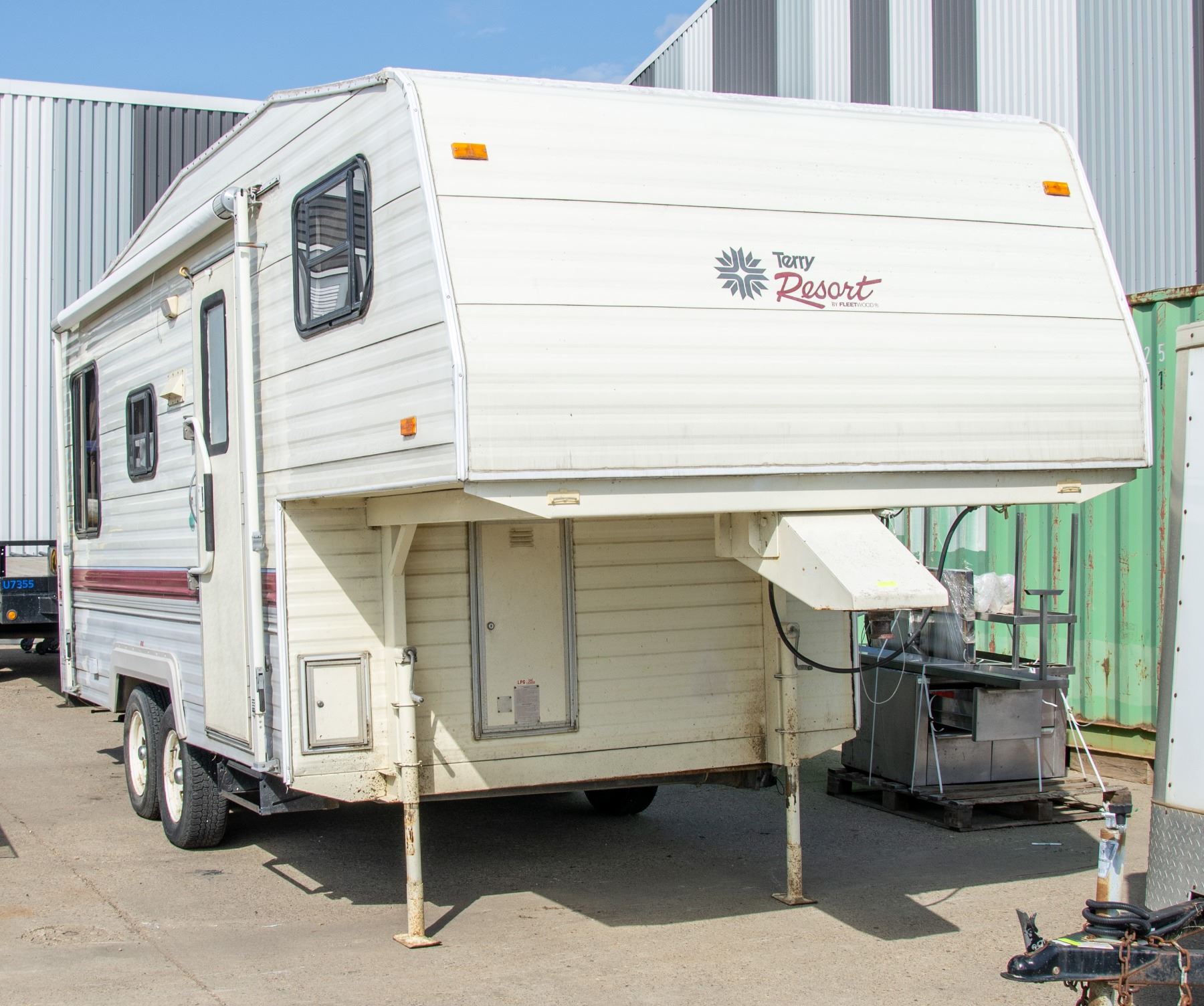 VIN: 1EK5B2124M2445197 Color: WHITE 1991 TERRY RESORTS FLEETWOOD FIFTH WHEEL, WITH SATELITE RECIEVER, SMALL CUBE TV, AIRGATE FOR FIFTH WHEEL, HOT WATER TANK RECENTLY REPLACED, 1BEDROOM, 1 BATHROOM WITH SHOWER, 1 DINING TABLE, 1 COUCH, MICROWAVE, FRIDGE, STOVE/OVEN, ALL APPLIANCES IN WORKING CONDITION, ALL BIDS SUBJECT TO BANK, BAILIFF OR OWNER APPROVAL. ALL VEHICLES ARE SOLD AS IS.