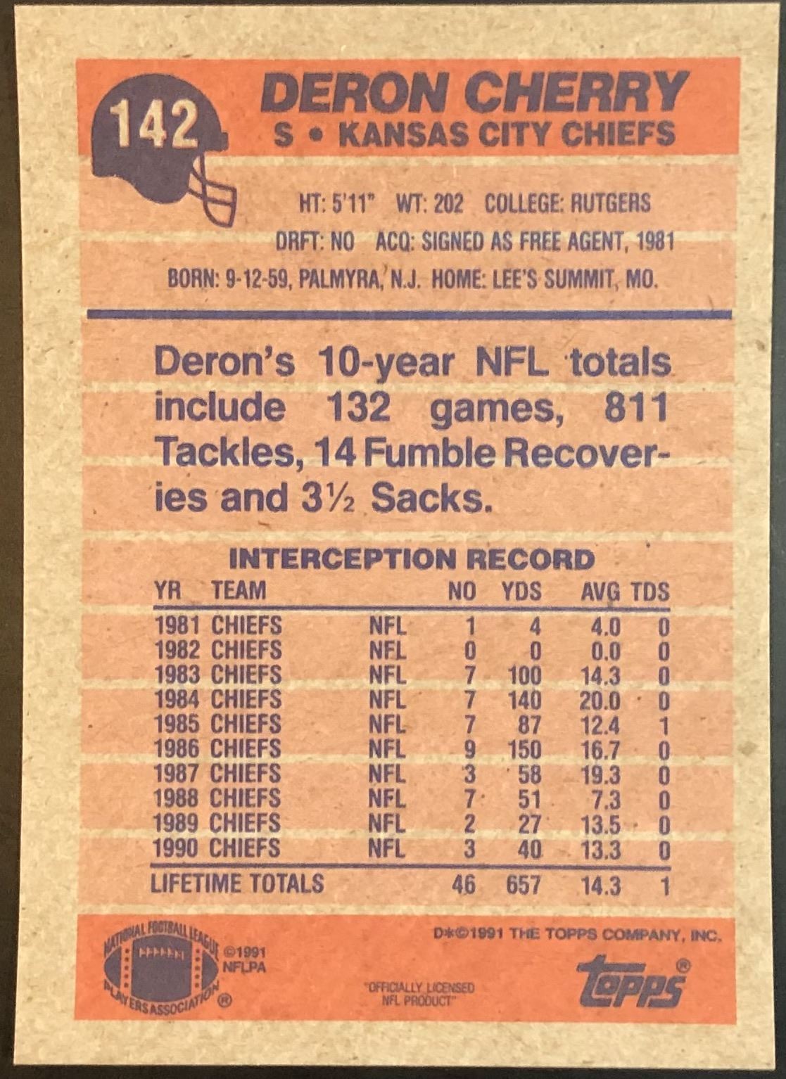 Card #142 NFL, football