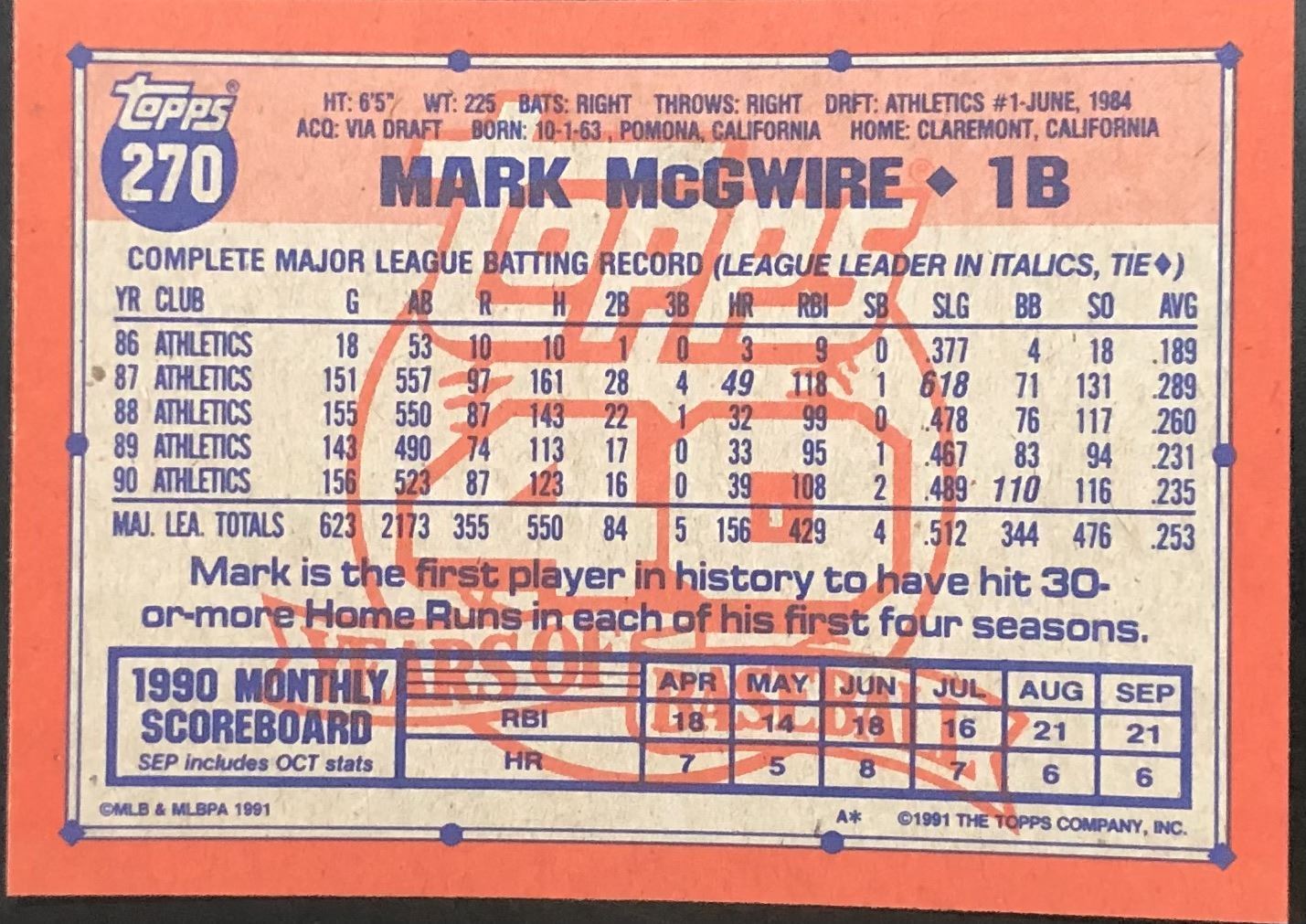 Card #270 MLB, baseball