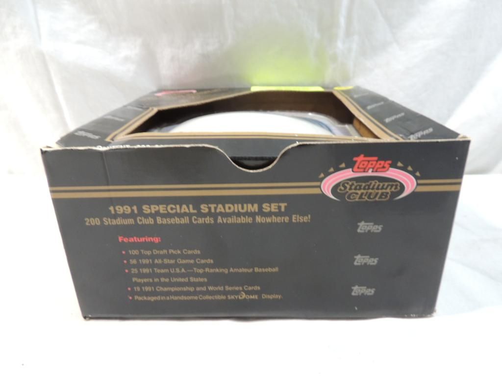 TOPPS STADIUM CLUB 1991 SPECIAL STADIUM SET 200 STADIUM CLUB BASEBALL CARDS AVAILABLE NOWHERE ELSE. FEATURING 100 TOP DRAFT PICK CARDS. 56 1991 ALL STAR GAME CARDS. 25 1991 TEAM USA TOP RANKING AMATEUR BASEBALL PLAYERS N THE UNITED STATES. 19 1991 CHAMPIO