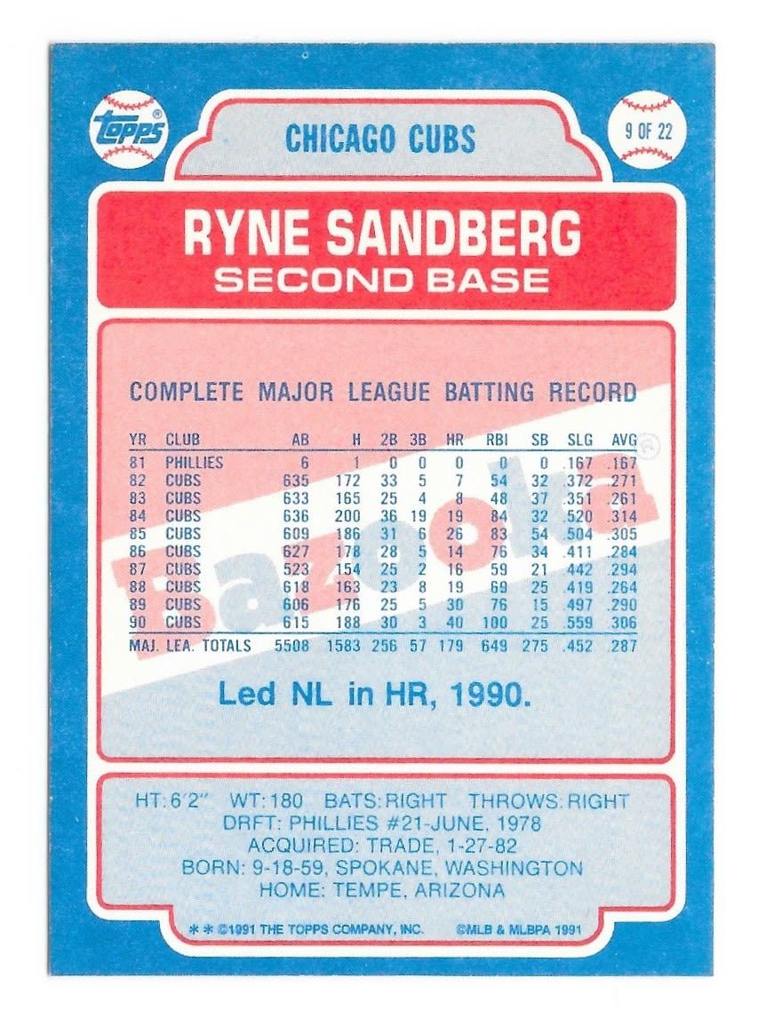 1991 Topps Bazooka Shining Star Insert Set Ryne Sandberg Card #9 of 27