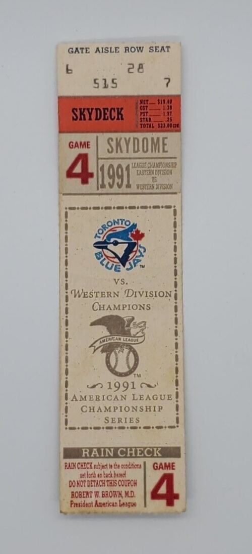1991 Toronto Blue Jays ALCS Game 4 Ticket Stub