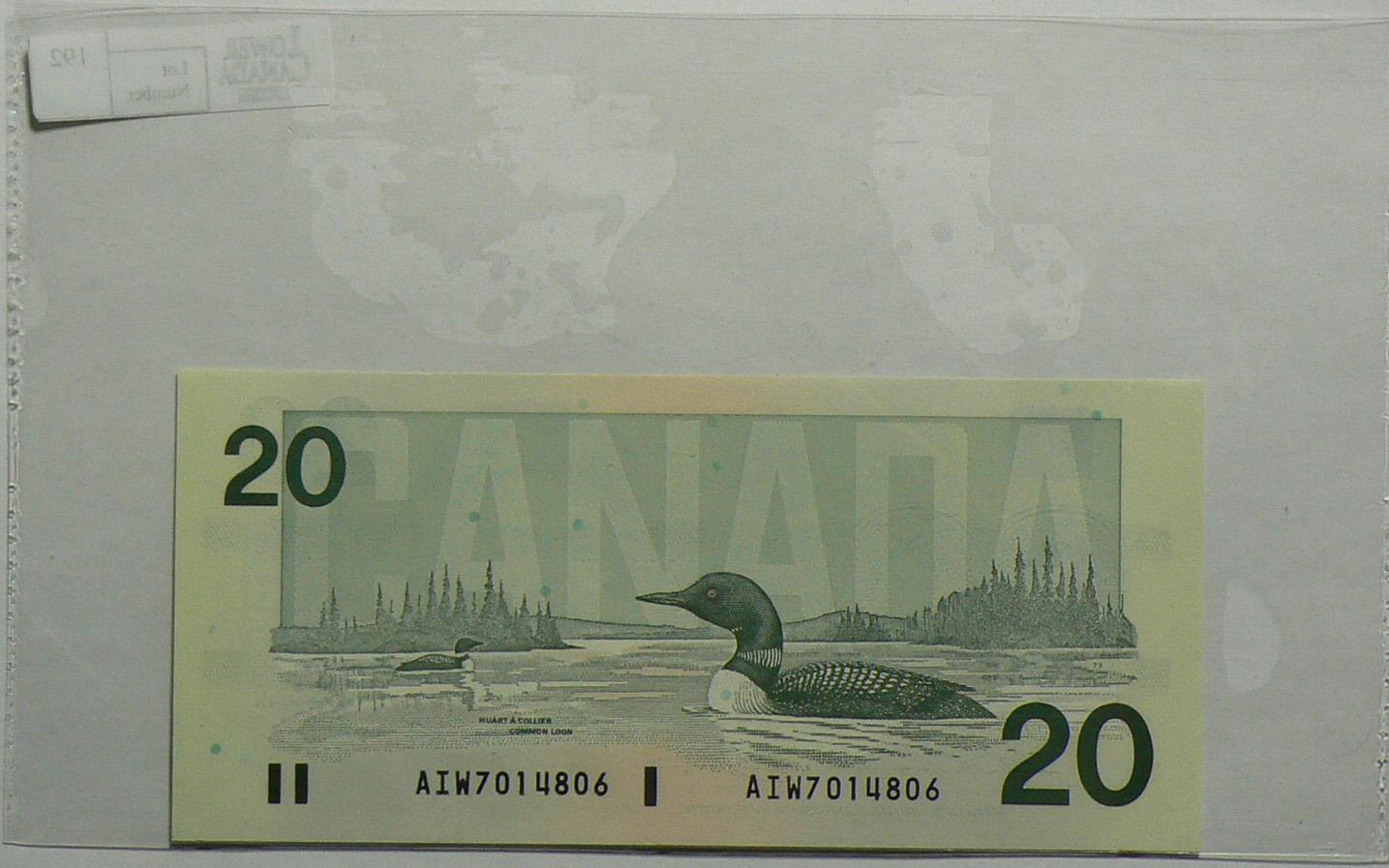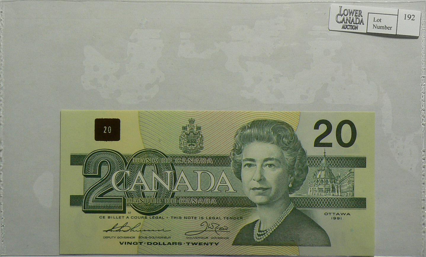 1991 Twenty Dollars, BC-58a-iii, Choice UNC, Thiessen Crow, serial AIW7014806 with serif.