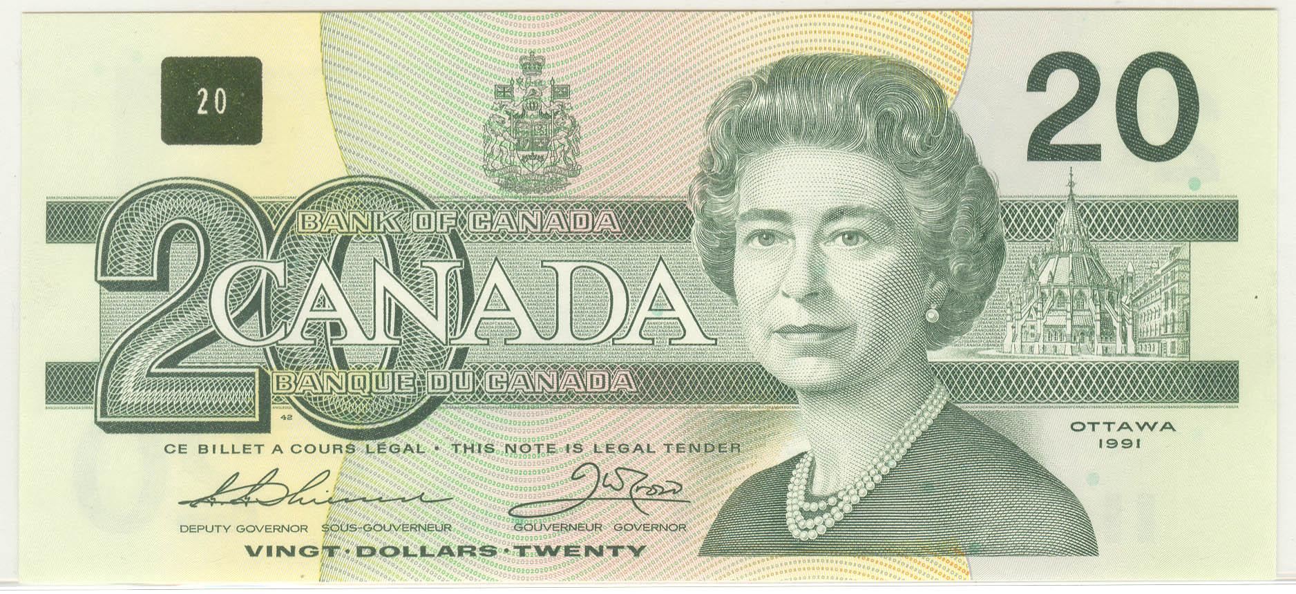 1991 Twenty Dollars Replacement, BC-58aA, GEM UNC, Thiessen Crow, serial EIX0482941 without serif.