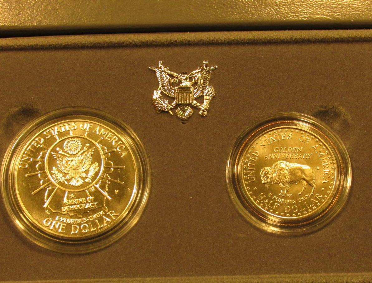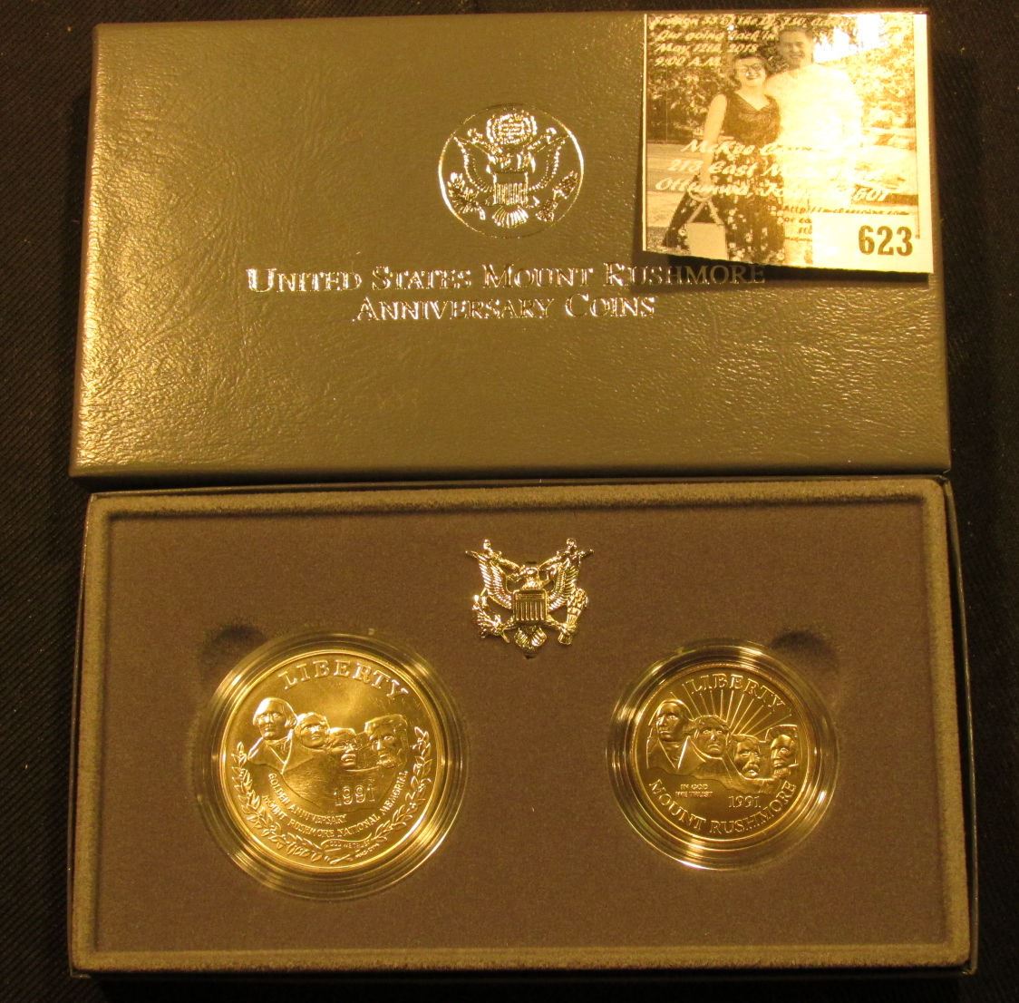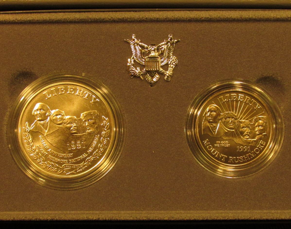 1991 Two-Coin Uncirculated Set of Mount Rushmore Anniversary Coins in original box with literature.