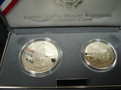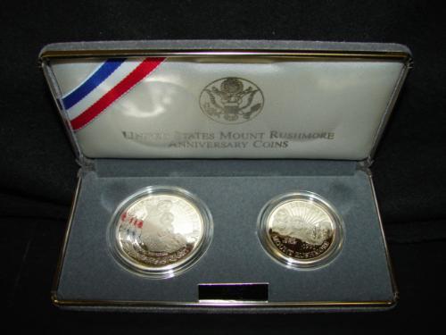 1991 U.S. MINT MOUNT RUSHMORE ANNIVERSARY TWO-COIN PROOF SET. Consists of two coins. Coins are in case with box.