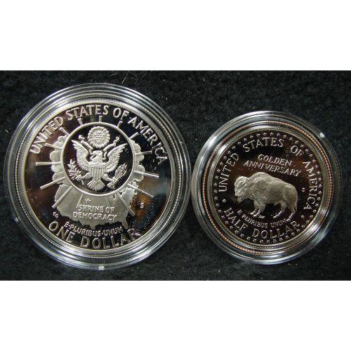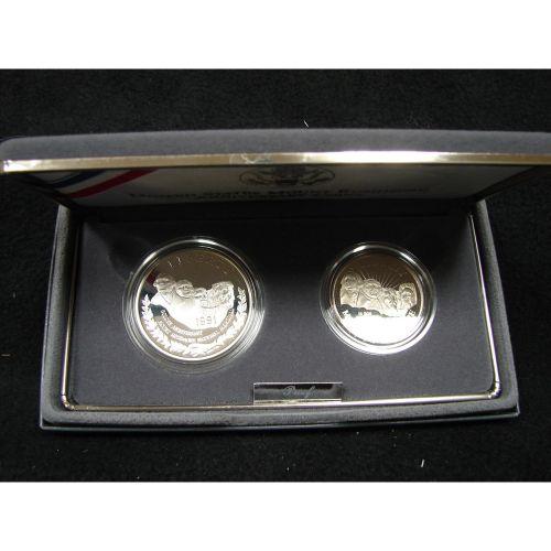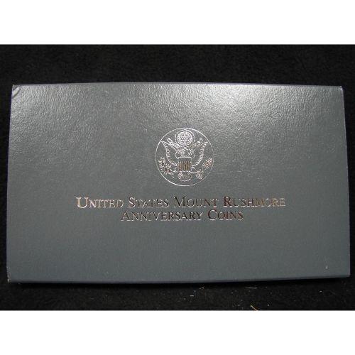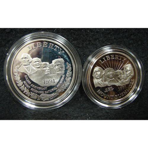 1991 U.S. MOUNT RUSHMORE ANNIVERSARY PROOF SET. Consists of half & silver dollar. In case & box.