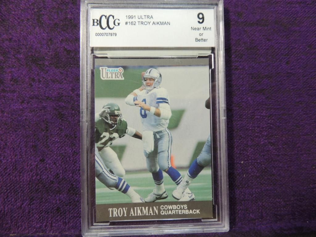 1991 ULTRA TROY AIKMAN #162 GRADED 9 NEAR MINT OF BETTER. GRADED BCCG FOOTBALL PLAYER CARDS. TRADING CARDS. COLLECTIBLE. FOOTBALL MEMORABILIA. GOOD CONDITION AS SHOWN. SEE PHOTO FOR MORE DETAILS.