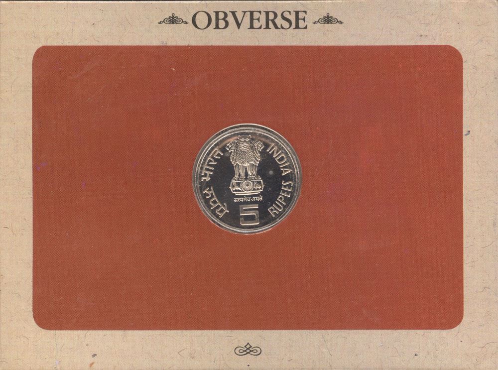 1991, UNC Set (One Coin), India Tourism Year, 5 Rupees, Bombay Mint, in Blister Pack, UNC.